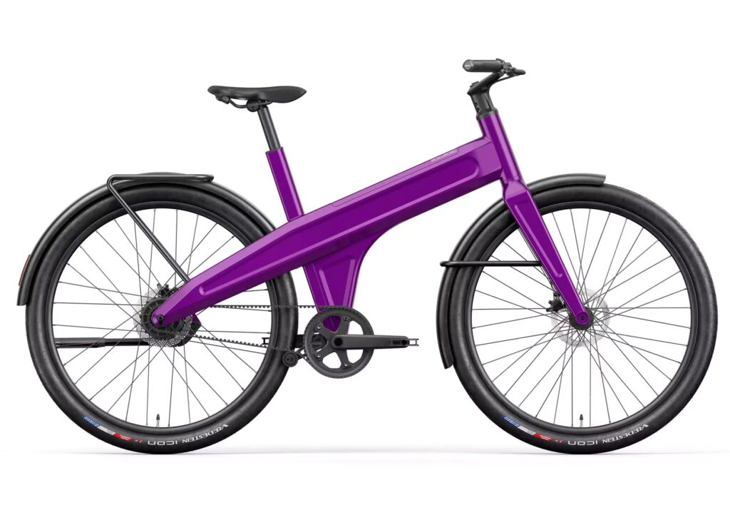 E-bike with belt drive and Single Speed. Powered by Rear Hub Motor. 480 Wh battery.