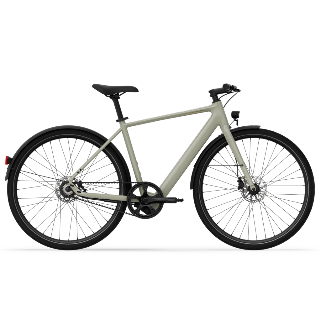 City e-bike featuring Gates CDN belt drive. 360 Wh battery. Weight: 15 kg.