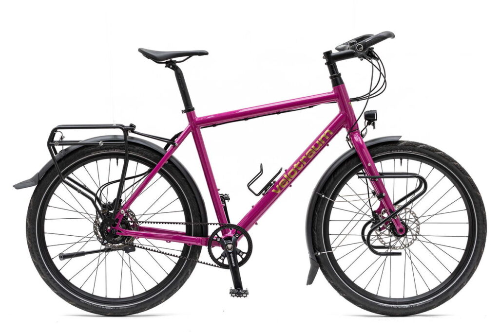 Touring bike with Gates CDX belt drive and Rohloff Speedhub hub. Maintenance-free riding.